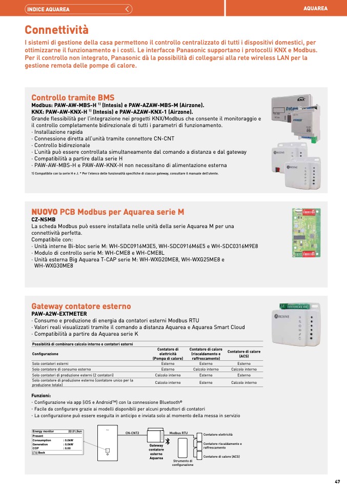 ottimizzarne il funzionamento e i costi. Le interfacce Panasonic supportano i protocolli KNX e Modbus.