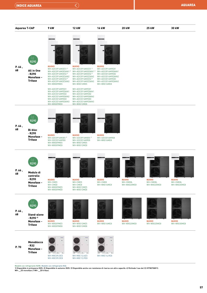 Modelli con refrigerante R290. Modelli con refrigerante R32.