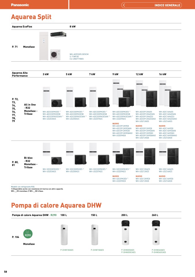 1) Disponibile anche con resistenze di riserva con altre capacità.