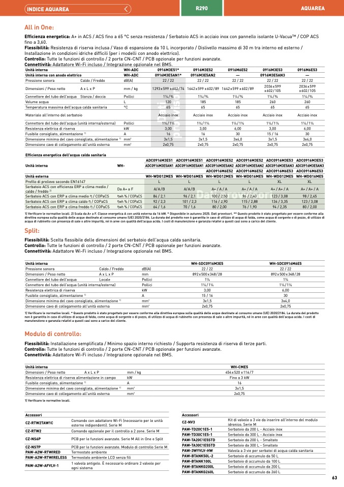 1) Verificare le normative locali. 2) Scala da A+ a F. Classe energetica A con unità esterna da 16 kW. * Disponibile in autunno 2025. Dati provvisori. ** Questo prodotto è stato progettato per essere conforme all