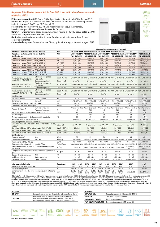 55 °C. 7) Verificare le normative locali. * Disponibile in estate 2025. Dati provvisori. ** Il calcolo di EER e COP si basa sulla norma EN 14511. *** Questo prodotto è stato progettato per essere conforme alla