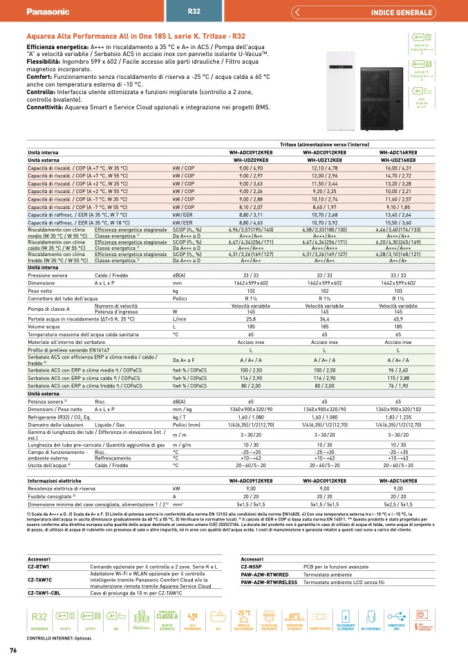 1) Scala da A+++ a D. 2) Scala da A+ a F. 3) Livello di potenza sonora in conformità alla norma EN 12102 alle condizioni della norma EN14825. 4) Con una temperatura esterna tra i -10 °C e i -15 °C, la