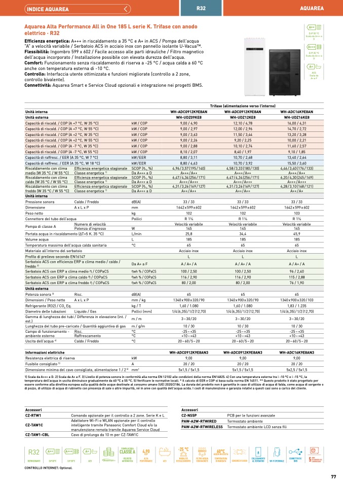 1) Scala da A+++ a D. 2) Scala da A+ a F. 3) Livello di potenza sonora in conformità alla norma EN 12102 alle condizioni della norma EN14825. 4) Con una temperatura esterna tra i -10 °C e i -15 °C, l