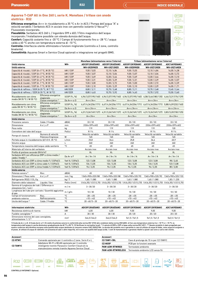 1) Scala da A+++ a D. 2) Scala da A+ a F. 3) Livello di potenza sonora in conformità alla norma EN 12102 alle condizioni della norma EN14825. 4) Con una temperatura esterna tra i -10 °C e i -15 °C, l