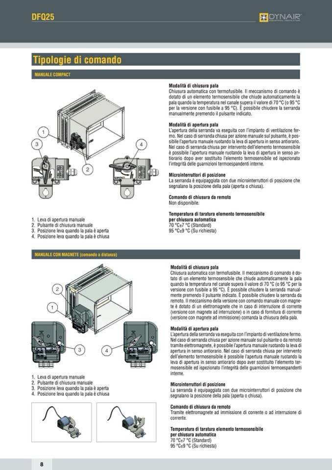 (versione con magnete ad immissione) comanda la chiusura della pala.