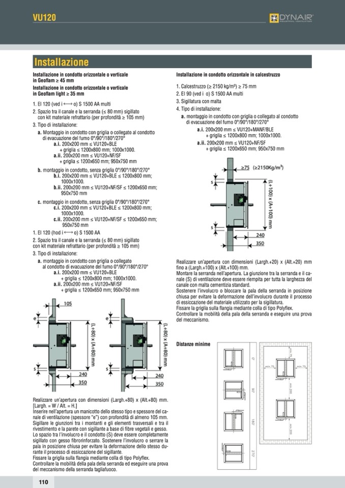 nale di ventilazione (spessore “e”) con profondità di almeno 105 mm.