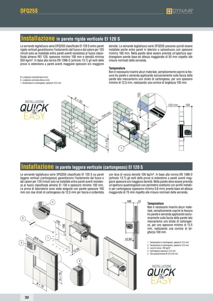 densità. Le serrande tagliafuoco serie DFQ25S possono quindi essere