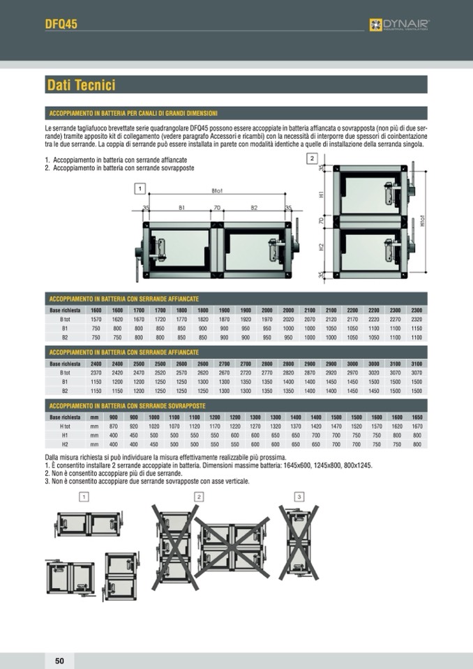Le serrande tagliafuoco brevettate serie quadrangolare DFQ45 possono essere accoppiate in batteria af