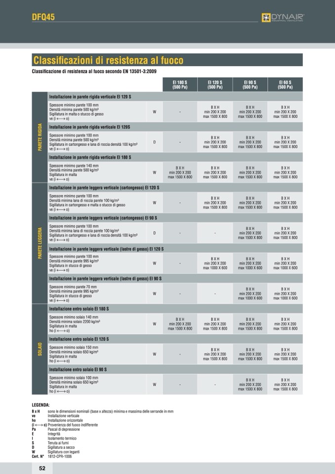 Classificazione di resistenza al fuoco secondo EN 13501-3:2009
