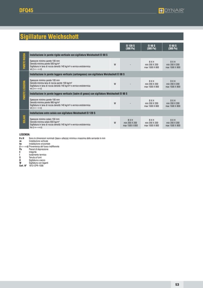 Installazione in parete rigida verticale con sigillatura Weichschott EI 90 S