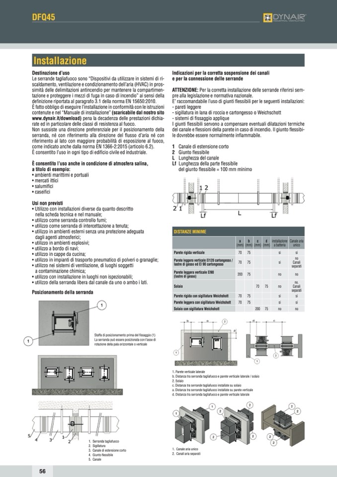 a. Distanza tra serrande tagliafuoco installate su parete verticale