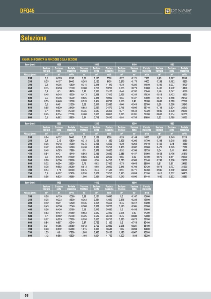 VALORI DI PORTATA IN FUNZIONE DELLA SEZIONE