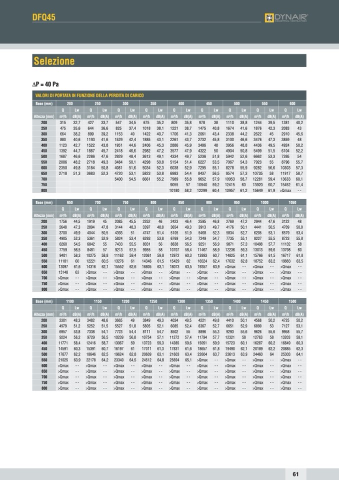 m3/h dB(A) m3/h dB(A) m3/h dB(A) m3/h dB(A) m3/h