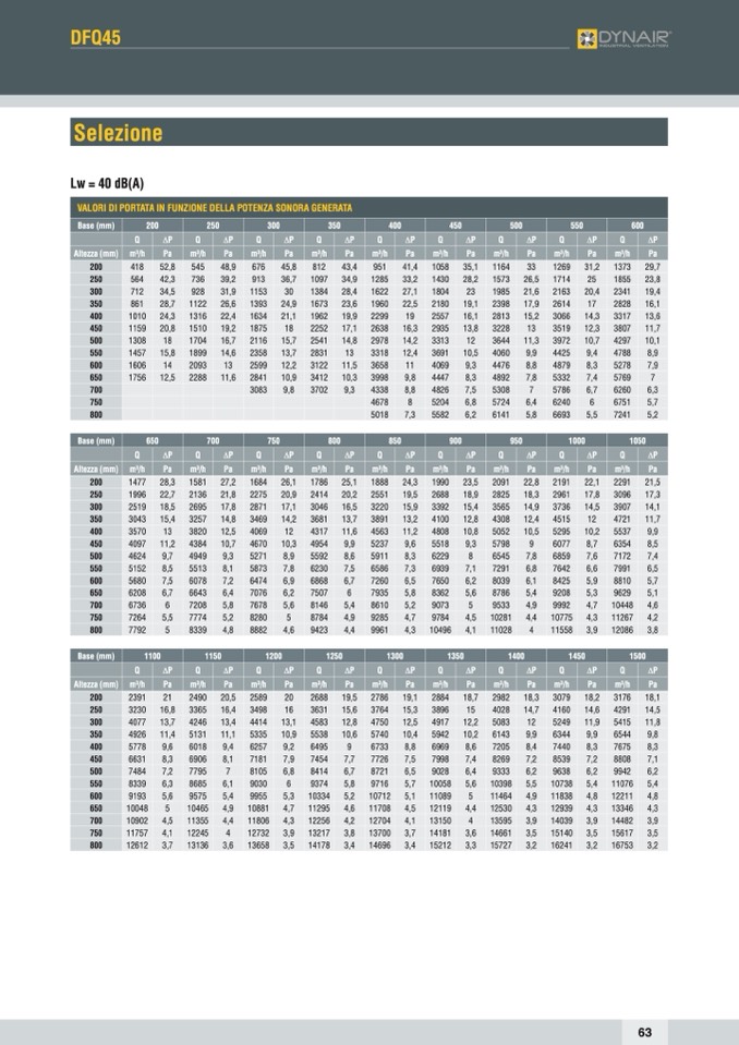 VALORI DI PORTATA IN FUNZIONE DELLA POTENZA SONORA GENERATA