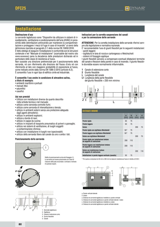 a. Distanza tra serrande tagliafuoco installate su parete verticale