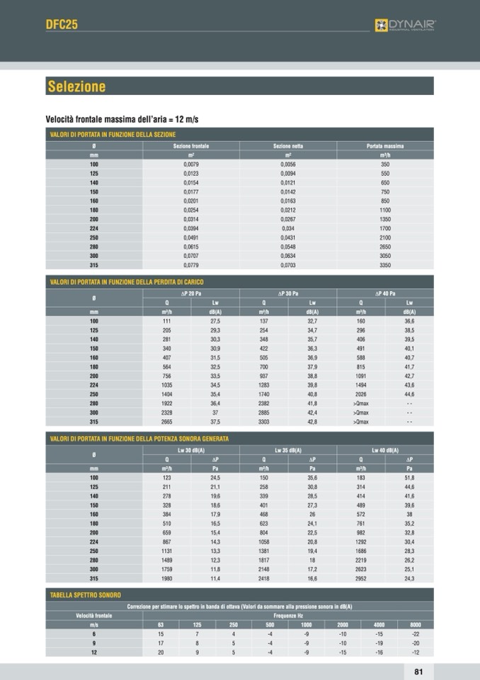 VALORI DI PORTATA IN FUNZIONE DELLA POTENZA SONORA GENERATA