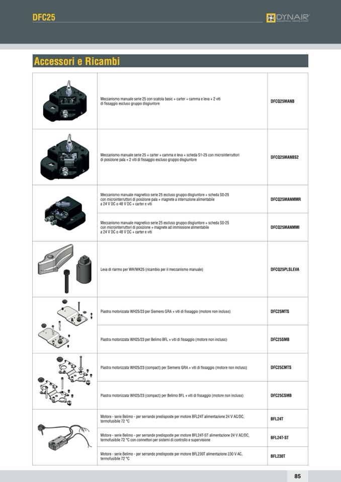 di posizione pala + 2 viti di fissaggio escluso gruppo disgiuntore