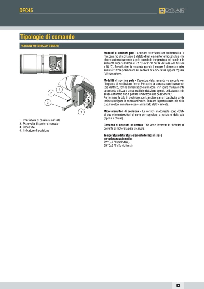 a 95 °C). Per chiudere la serranda quando il motore è alimentato agire
