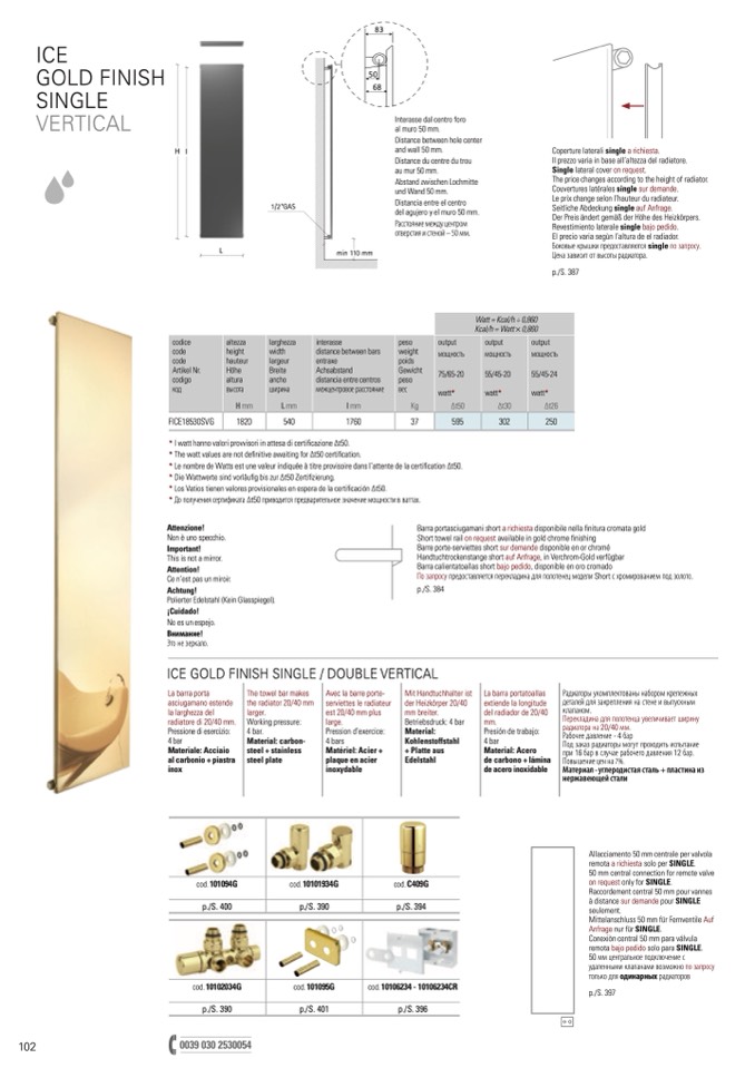 Barra calientatoallas short bajo pedido, disponible en oro cromado