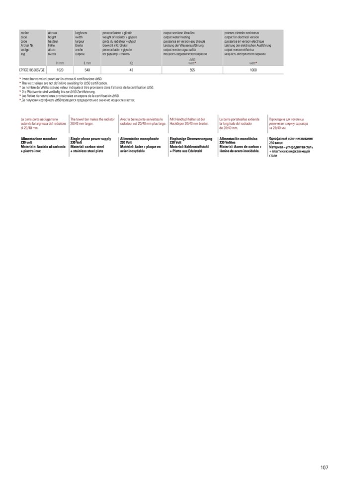 The watt values are not definitive awaiting for Δt50 certification.