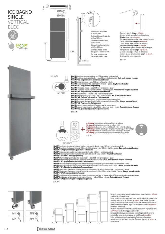 Mod SP1: infrared programmable thermostat as standard + cable 1200 mm + schuko plug + glicole
