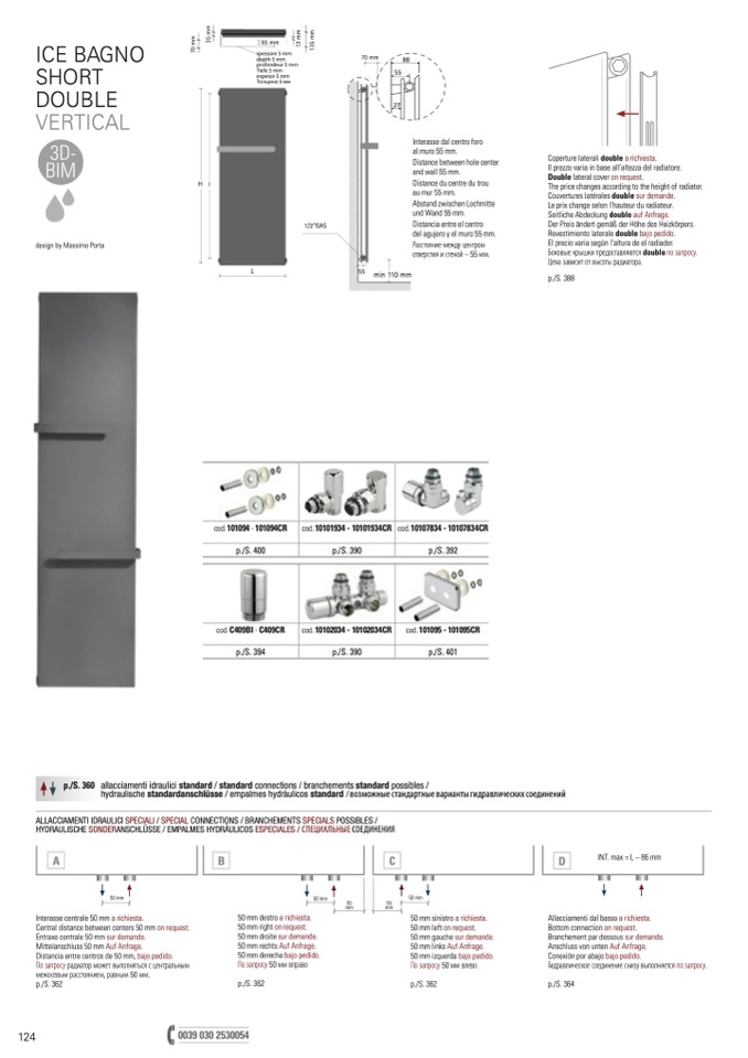 allacciamenti idraulici standard / standard connections / branchements standard possibles /