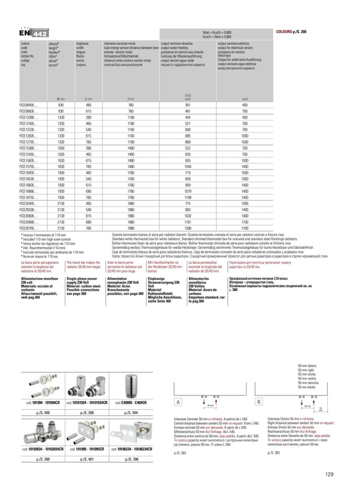 Interasse Centrale 50 mm a richiesta. A partire da L 540.
