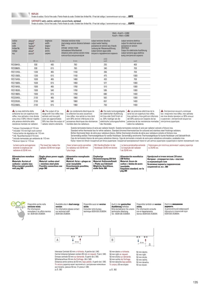 Interasse Centrale 50 mm a richiesta. A partire da L 540.