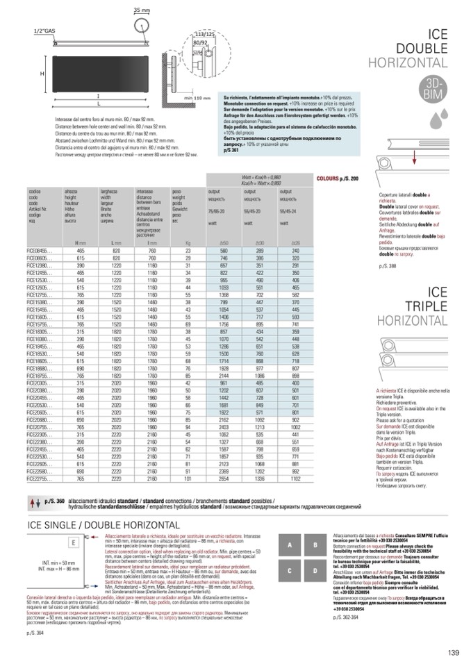 min = 50 mm, interasse max = altezza del radiatore – 86 mm, a richiesta, con