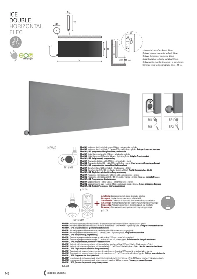 Mod SP1: infrared programmable thermostat as standard + cable 1200 mm + schuko plug + glicole