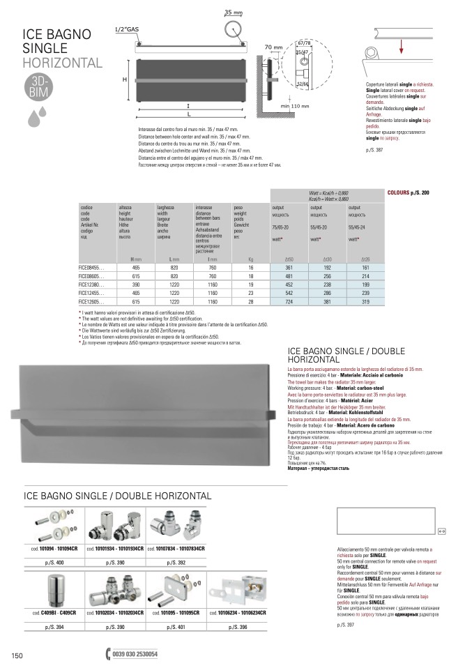 The towel bar makes the radiator 35 mm larger.