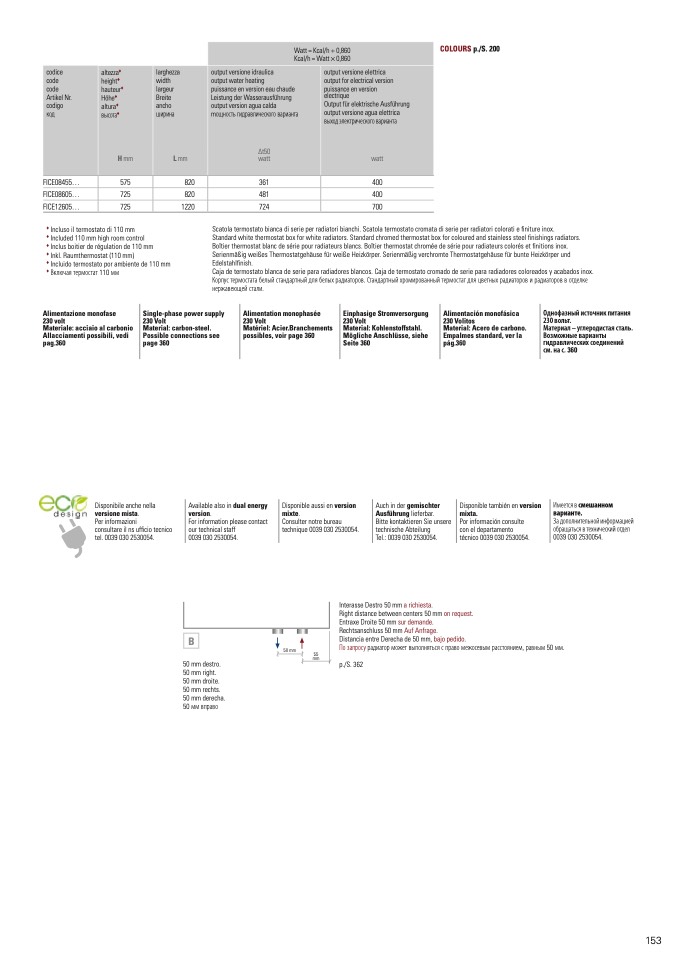 По запросу радиатор может выполняться с право межосевым расстоянием, равным 50 мм.