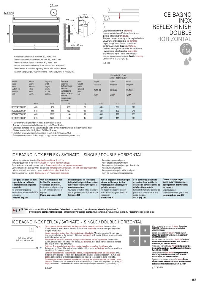 50 mm, interasse max = altezza del radiatore – 86 mm, a richiesta, con interasse speciale (inviare