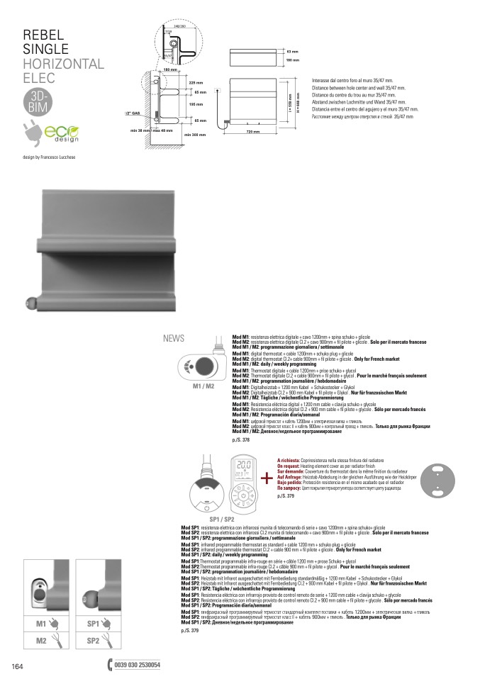 Mod SP1: infrared programmable thermostat as standard + cable 1200 mm + schuko plug + glicole
