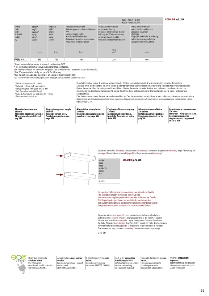 Coperture laterali a richiesta. Il prezzo varia in base all’altezza del radiatore.