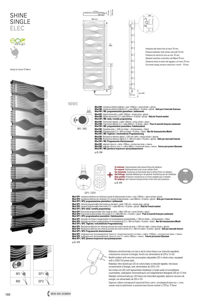 Mod SP1: infrared programmable thermostat as standard + cable 1200 mm + schuko plug + glicole