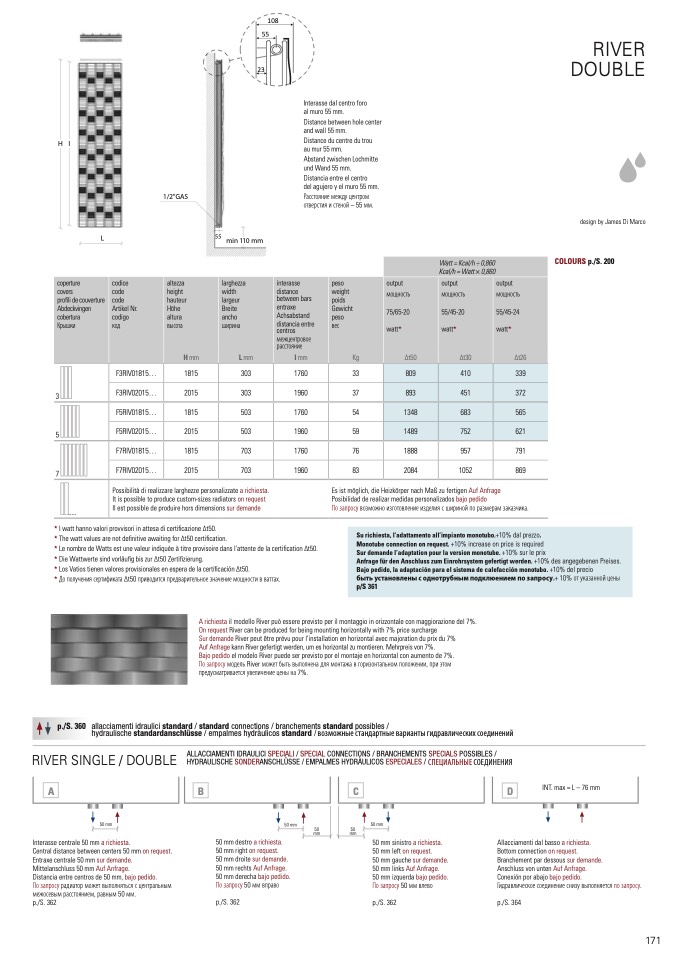 Sur demande River peut être prévu pour l’installation en horizontal avec majoration du prix du 7%