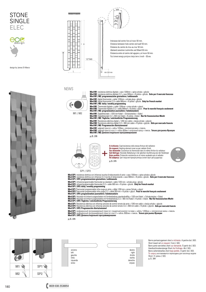 Mod SP1: infrared programmable thermostat as standard + cable 1200 mm + schuko plug + glicole