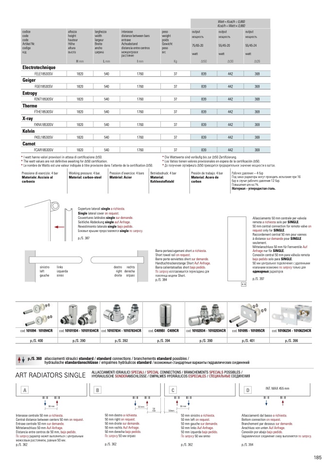 Interasse centrale 50 mm a richiesta.