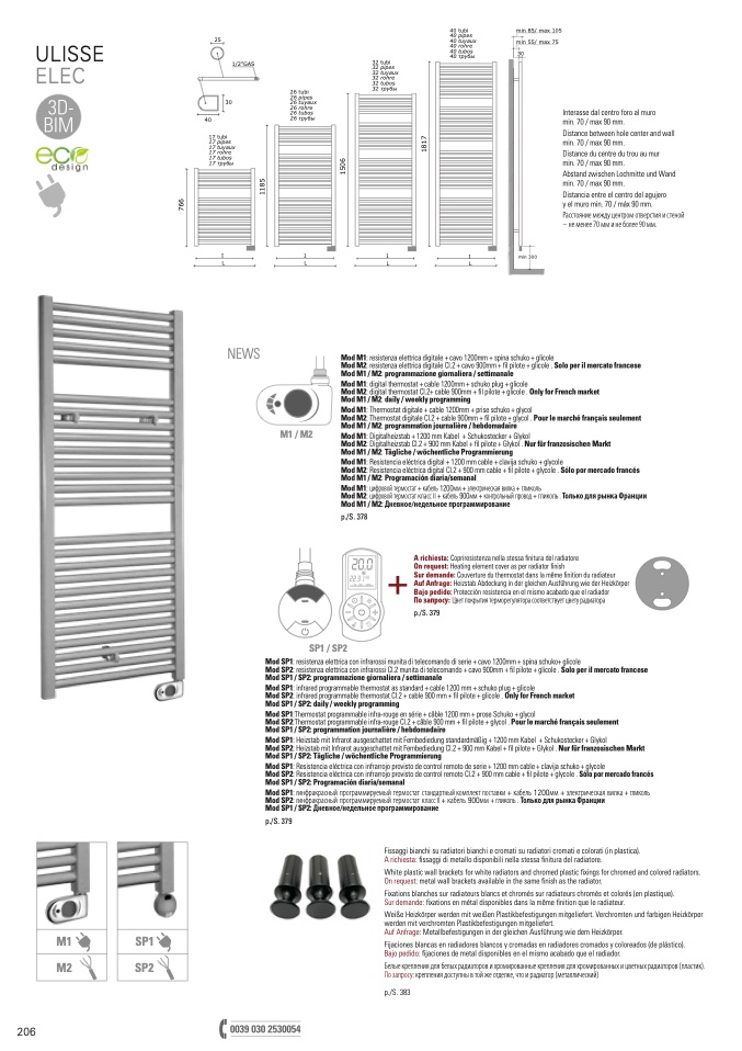 Mod SP1: infrared programmable thermostat as standard + cable 1200 mm + schuko plug + glicole
