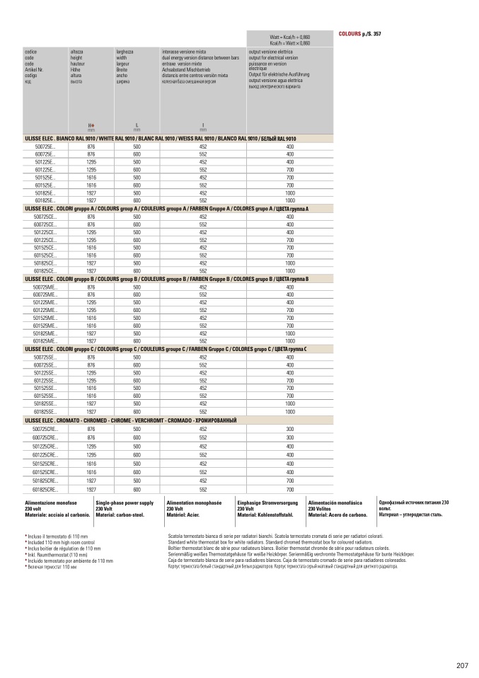 ULISSE ELEC . COLORI gruppo C / COLOURS group C / COULEURS groupe C / FARBEN Gruppe C / COLORES grupo C / ЦВЕТА группа C