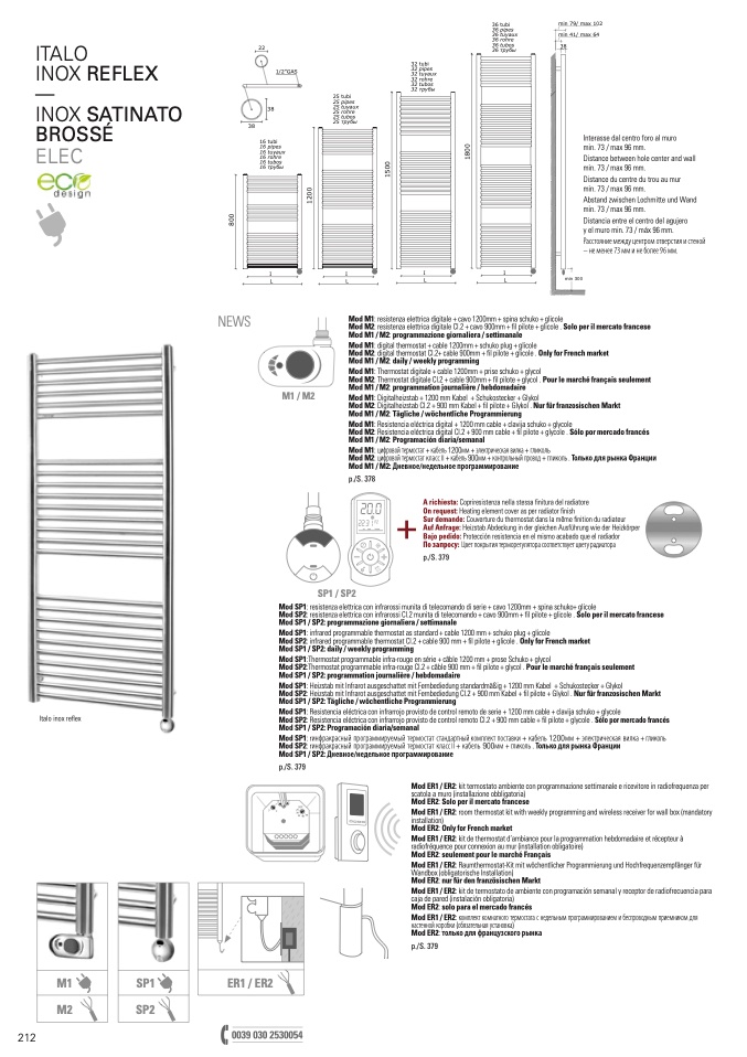 Mod SP1: infrared programmable thermostat as standard + cable 1200 mm + schuko plug + glicole