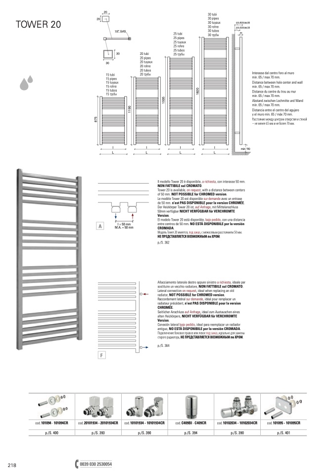 Il modello Tower 20 è disponibile, a richiesta, con interasse 50 mm.