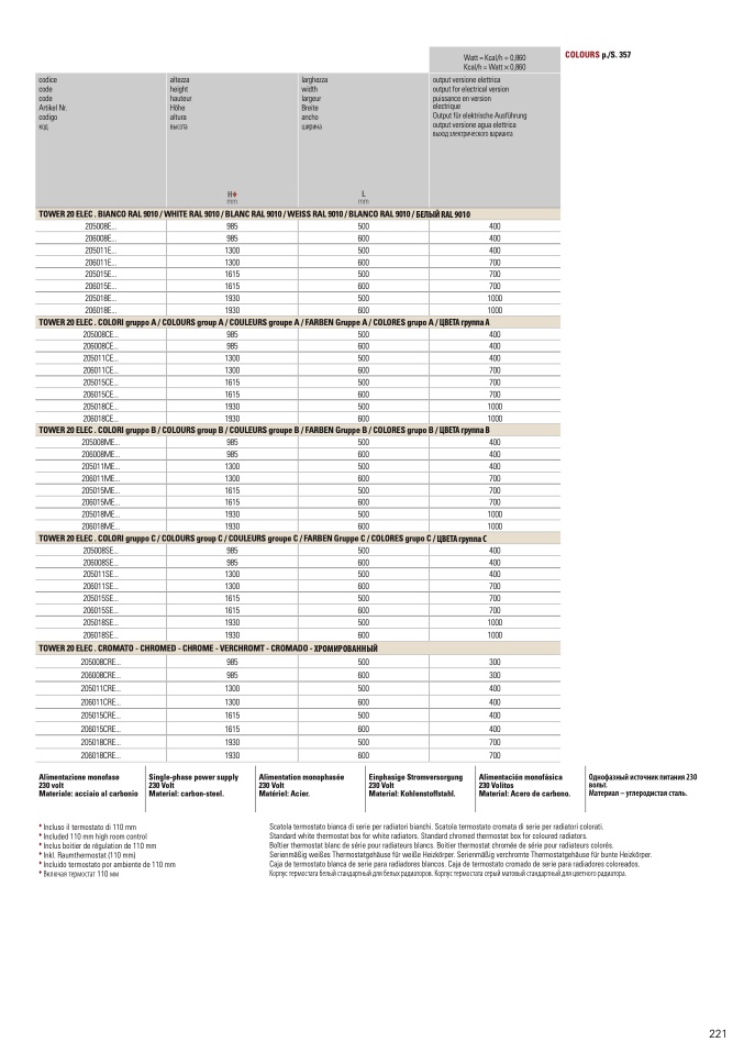 TOWER 20 ELEC . COLORI gruppo A / COLOURS group A / COULEURS groupe A / FARBEN Gruppe A / COLORES grupo A / ЦВЕТА группа A
