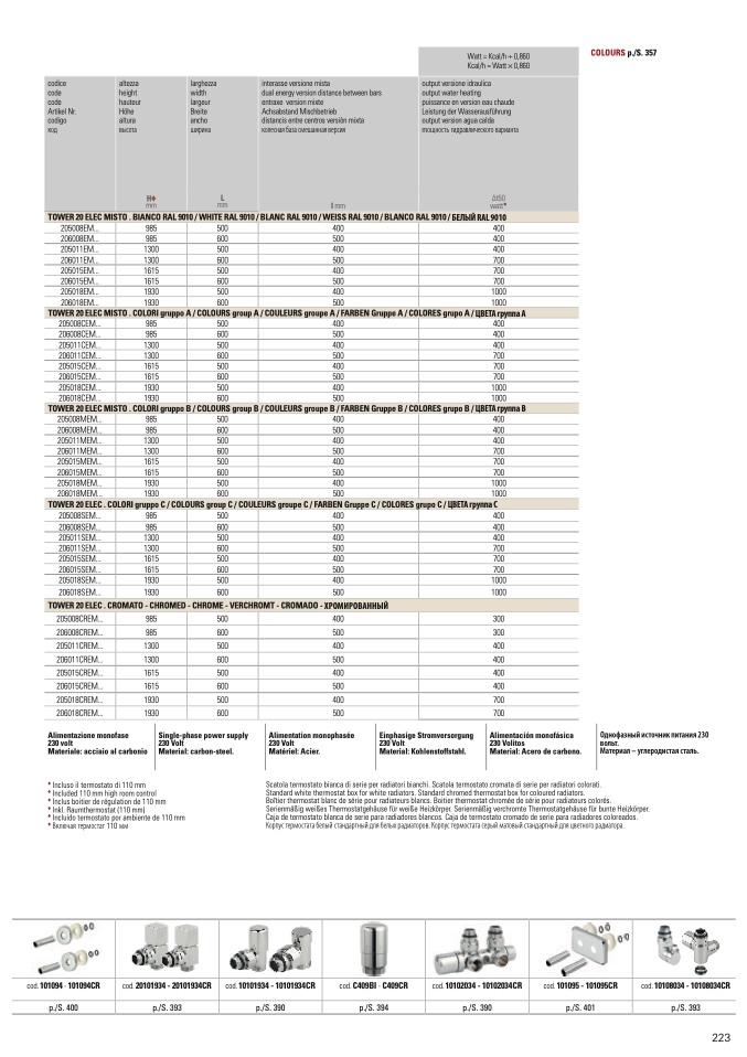 TOWER 20 ELEC MISTO . COLORI gruppo B / COLOURS group B / COULEURS groupe B / FARBEN Gruppe B / COLORES grupo B / ЦВЕТА группа B