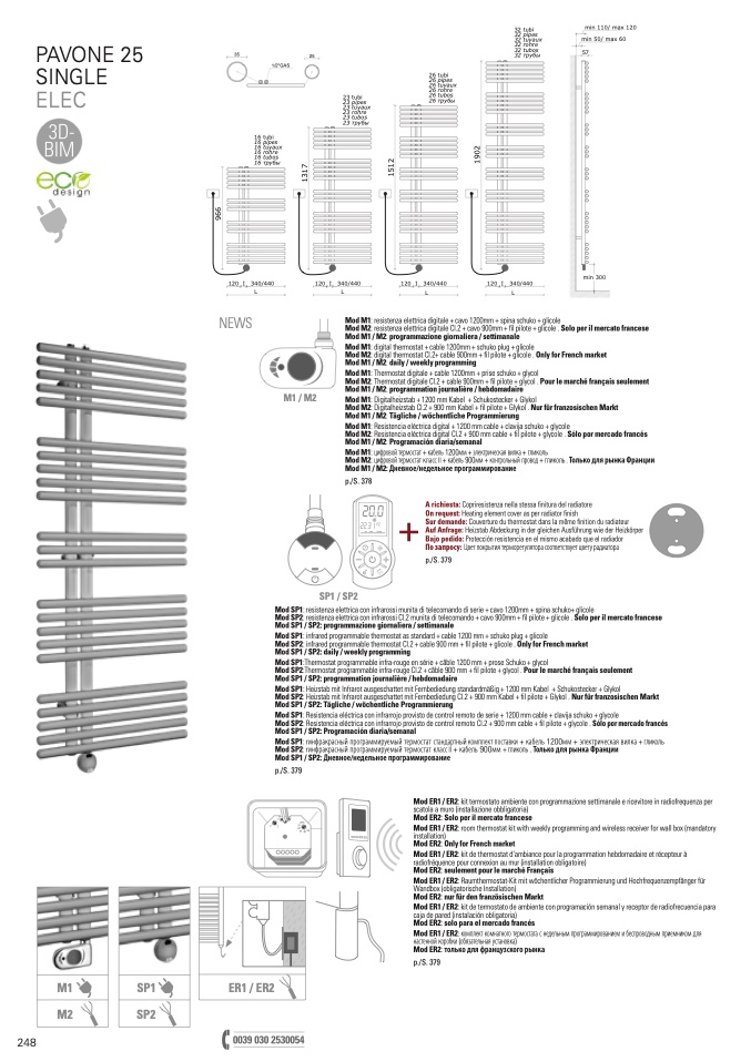 Mod SP1: infrared programmable thermostat as standard + cable 1200 mm + schuko plug + glicole