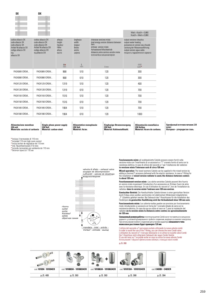 Funcionamiento mixto: Los calienta-toallas pueden ser provistos por funcionamiento