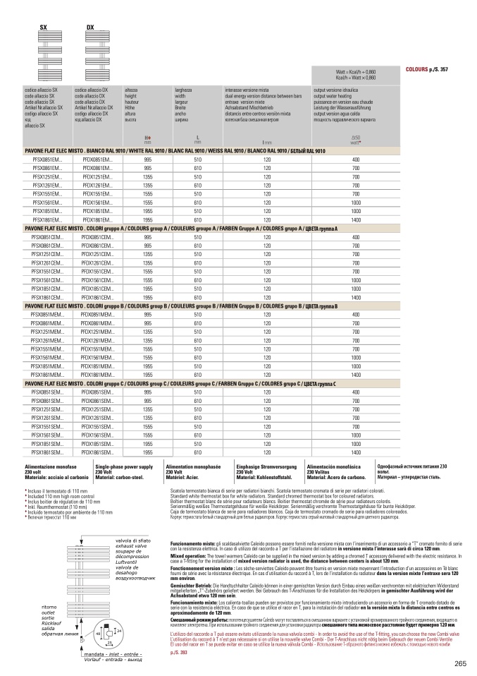 PAVONE FLAT ELEC MISTO . COLORI gruppo A / COLOURS group A / COULEURS groupe A / FARBEN Gruppe A / COLORES grupo A / ЦВЕТА группа A