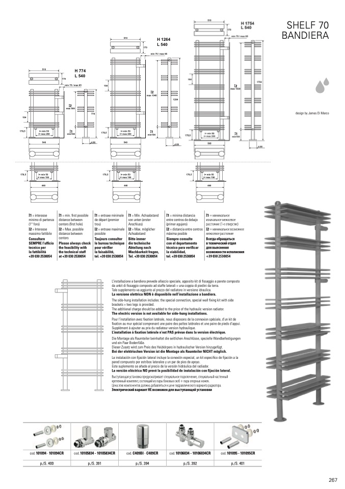 L’installazione a bandiera prevede allaccio speciale, apposito kit di fissaggio a parete composto
