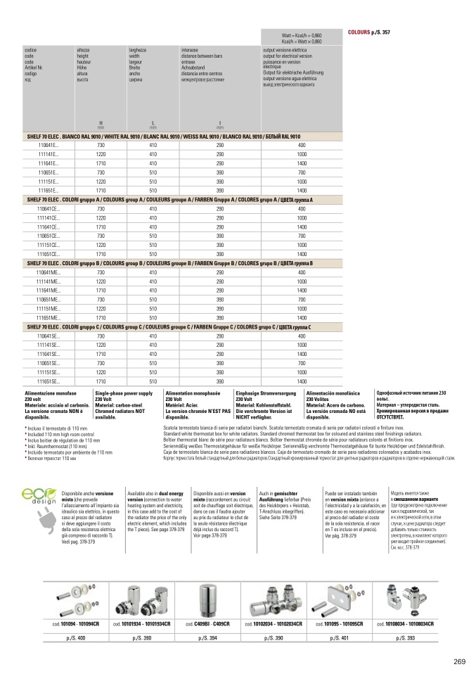 SHELF 70 ELEC . COLORI gruppo A / COLOURS group A / COULEURS groupe A / FARBEN Gruppe A / COLORES grupo A / ЦВЕТА группа A